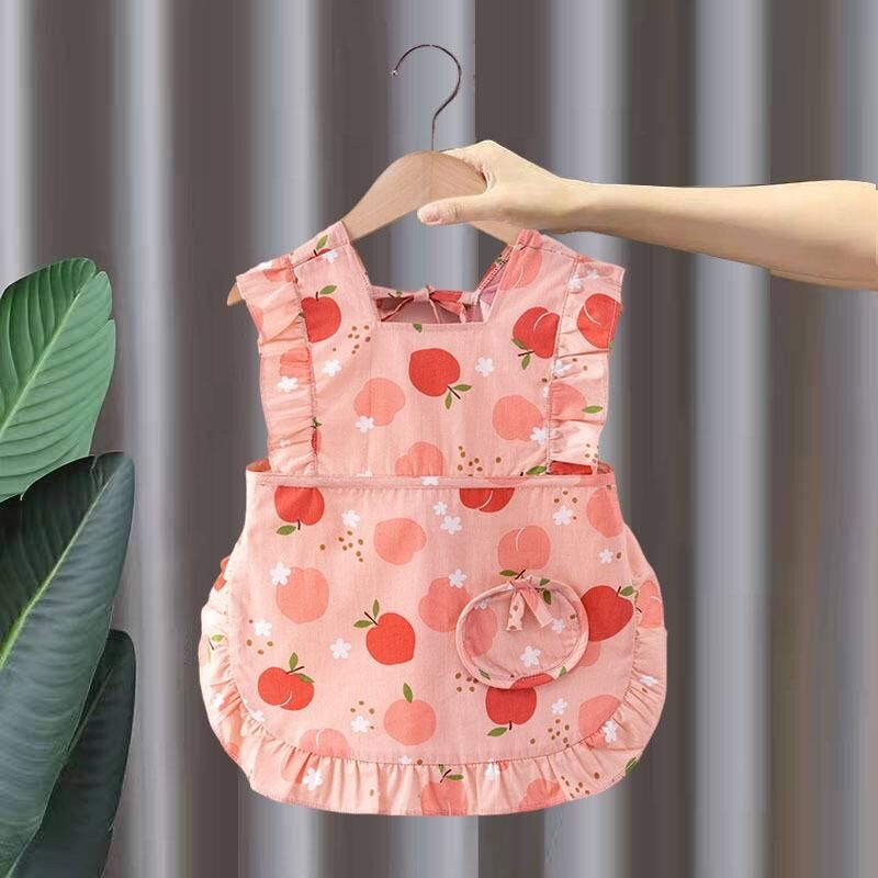 Children Summer Sleeveless Bibs Flowery Eating Reversible Clothes, Style: Peach(Size: 110)
