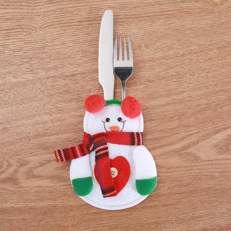 Σετ Μαχαιροπίρουνων Χριστουγεννιάτικης Διακόσμησης, Μικρός Χιονάνθρωπος, Μαχαίρι και Πιρούνι σε Τσάντα, Δημιουργικό Σετ Τραπεζαρίας για το Σπίτι, Προδιαγραφή: Καρδιά, Χιονάνθρωπος.