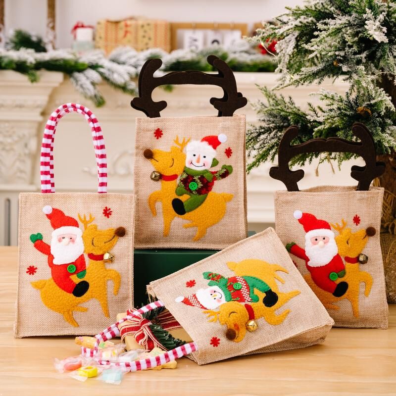 Τσάντα μεταφοράς με σχέδιο ταράνδου για τα Χριστούγεννα, τσάντα δώρου για γλυκά με παιδικά σχέδια κινούμενων σχεδίων, Στυλ: Κέρατα, Χιονάνθρωπος