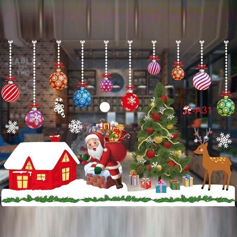 Αυτοκόλλητα διακόσμησης Χριστουγέννων για παράθυρα και τοίχους, διακόσμηση βιτρίνας εμπορικού κέντρου και σούπερ μάρκετ (Χρώμα A31)