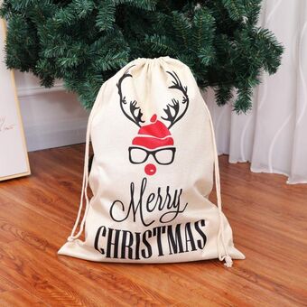 Large Printed Linen Backpack Christmas Gift Bag Candy Bag(A Type)