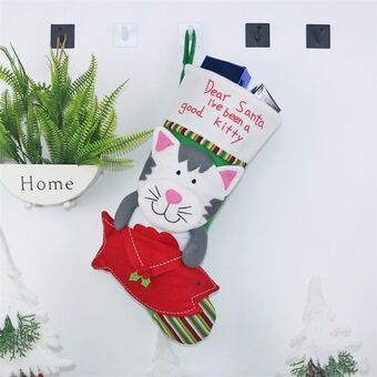 CX20224 Cat Pattern Christmas Sock Gift Bag Christmas Tree Pendant Decoration