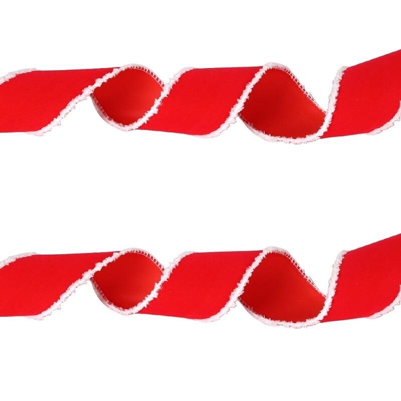 Χριστούγεννα Απομίμηση κάνναβης κορδέλα διακόσμηση με σύρμα, Μήκος: 10M καθαρό κόκκινο λευκό άκρο
