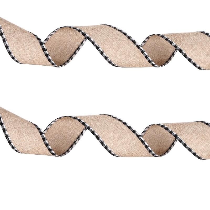 Χριστούγεννα Απομίμηση κάνναβης κορδέλα διακόσμηση με σύρμα, Μήκος: 4M χακί μαύρο άσπρο άκρο