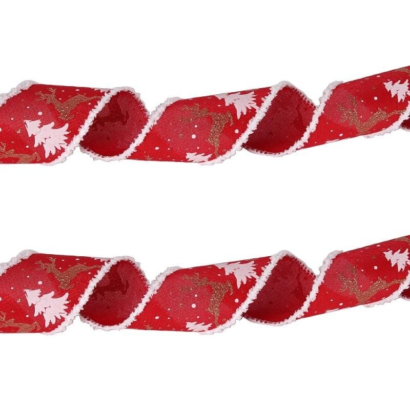 Χριστούγεννα Απομίμηση κάνναβης κορδέλα διακόσμηση με σύρμα, Μήκος: 4M Κόκκινο λευκό άκρο