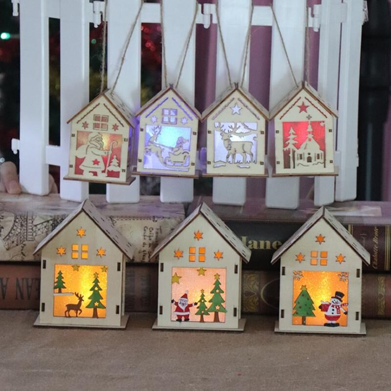 Christmas Luminous Wooden House Christmas Tree Decorations Hanging Ornaments DIY Gift Window Decoration, Style:Large Elk