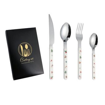 Σετ δώρου μαχαιροπίρουνων από ανοξείδωτο ατσάλι για τα Χριστούγεννα, 4 τεμ./πακέτο, Χρώμα: Ασημί, Χριστουγεννιάτικο κουτί.