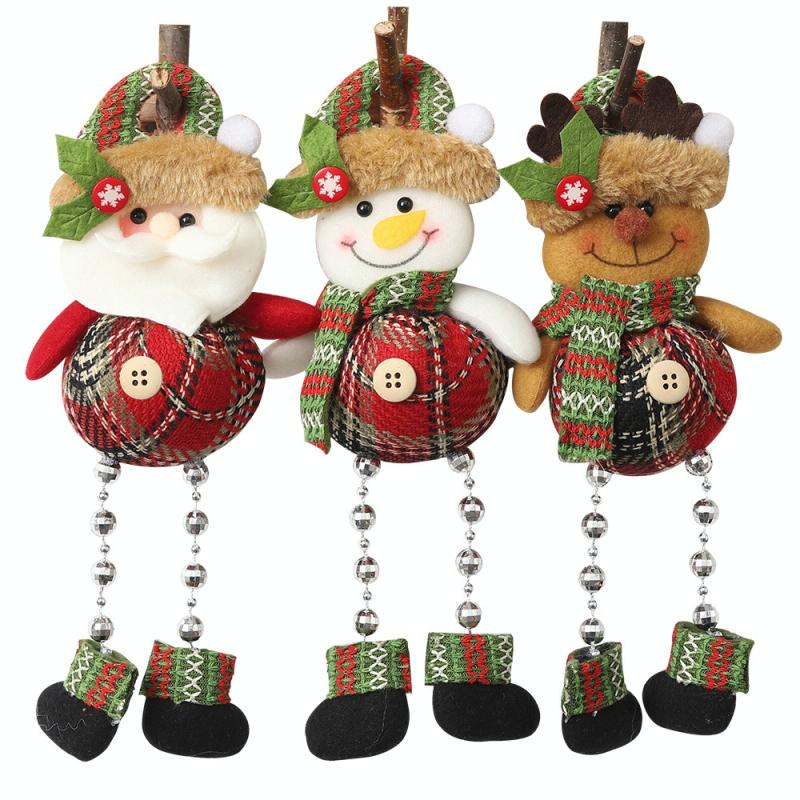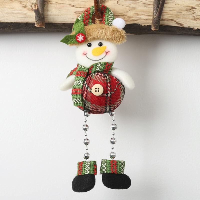 Christmas Plaid Cloth Beads Leg Pendants Christmas Window Decoration Cartoon Small Doll Ornaments(Snowman)