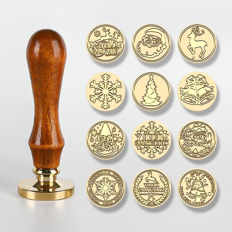 Christmas Series Fire Lacquer Seal Wood Grain Handle+Brass Seal Head(SD-65)