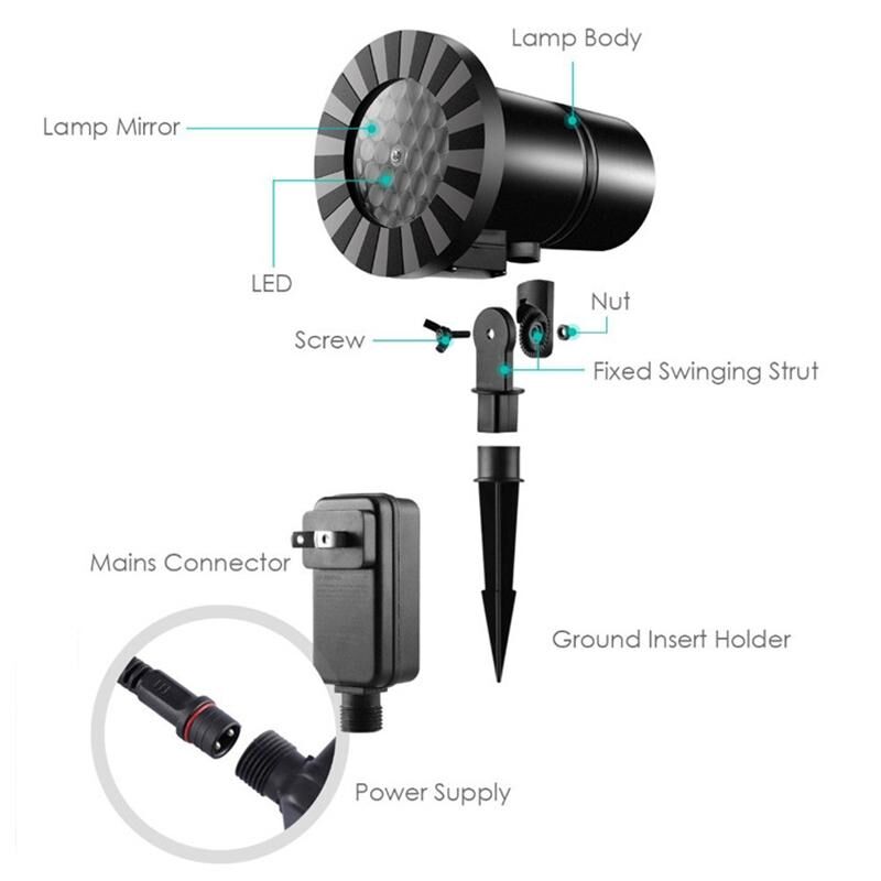 Φωτιστικό Προβολής Χριστουγεννιάτικου Χιονιού για Εξωτερικούς Χώρους, Αδιάβροχο, Διακόσμηση Τοπίου & Γκαζόν (Ευρωπαϊκό Βύσμα)