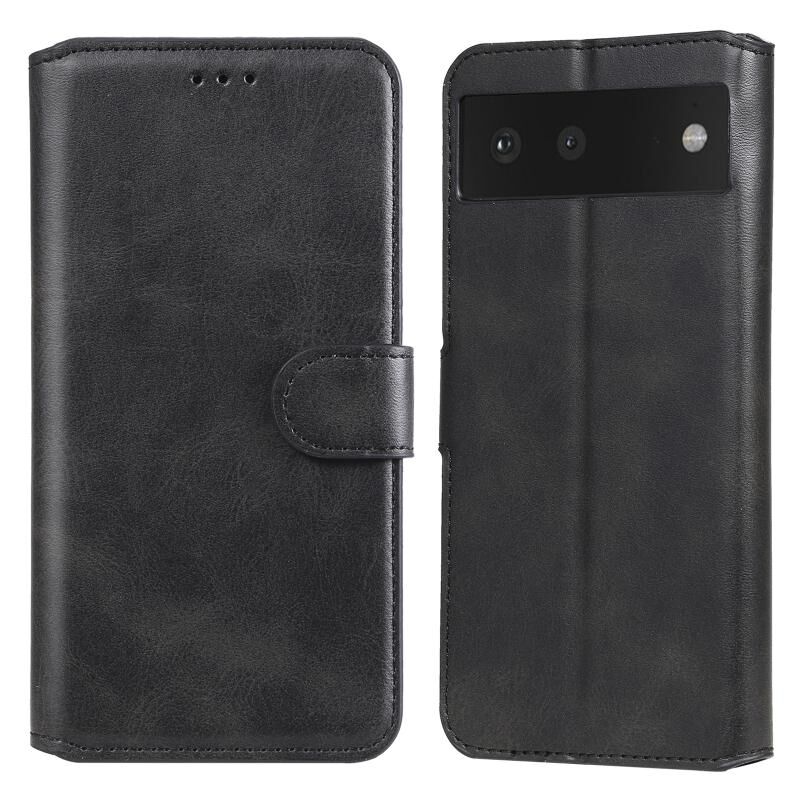 Κλασική θήκη από δέρμα μοσχαριού PU + TPU με οριζόντια αναδιπλούμενη θήκη με θήκη & υποδοχές καρτών & πορτοφόλι για το Google Pixel 6 (μαύρο)