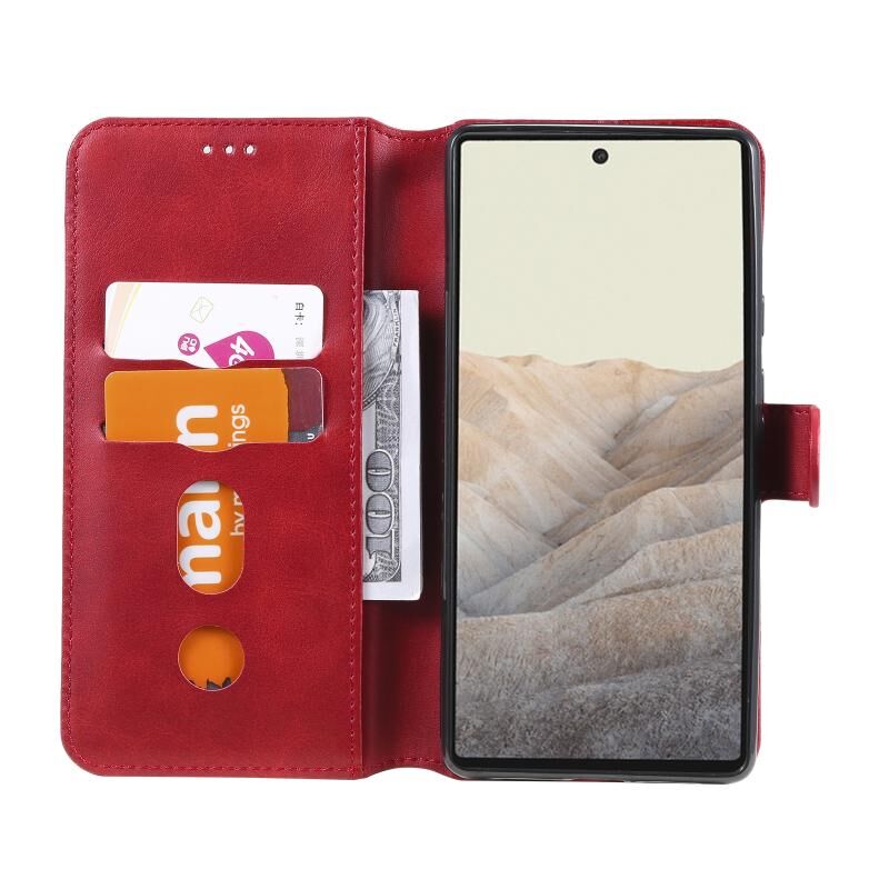 Κλασική θήκη από δέρμα μοσχαριού PU + TPU με οριζόντια αναδιπλούμενη θήκη με θήκη & υποδοχές καρτών & πορτοφόλι για το Google Pixel 6 (κόκκινο)
