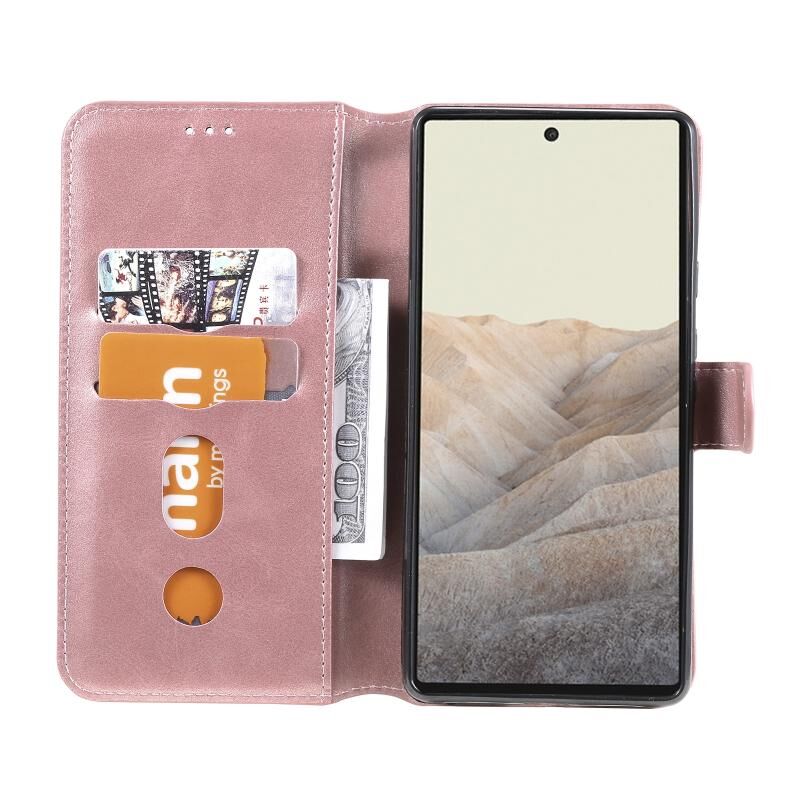 Κλασικό μοσχάρι υφή PU + TPU οριζόντια Flip δέρμα υπόθεση με θήκη & υποδοχές καρτών & πορτοφόλι για το Google Pixel 6 (Rose Gold)