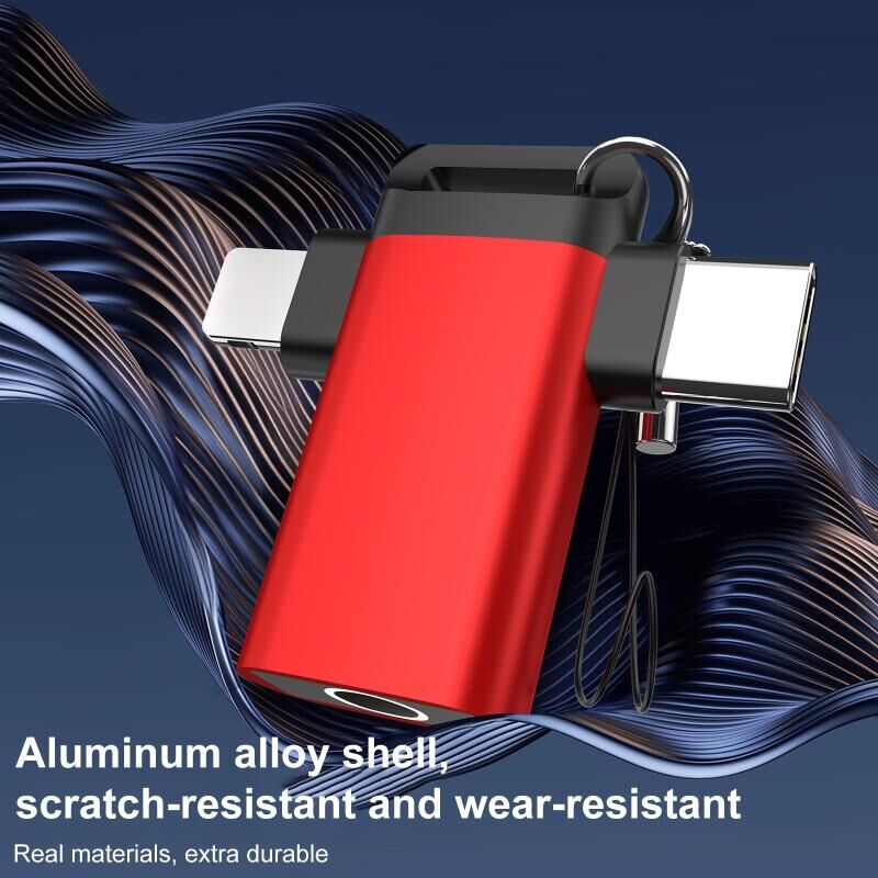 Classic Style Type-C and 8 Pin to 3.5mm Audio Adapter with Lanyard(Red)