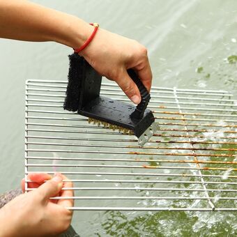 Εξωτερική βούρτσα καθαρισμού μπάρμπεκιου Camping Picnic BBQ Χάλκινο σύρμα ψησταριάς Τρία σε μία ορθή γωνία Χάλκινο σύρμα τριγωνικής βούρτσας