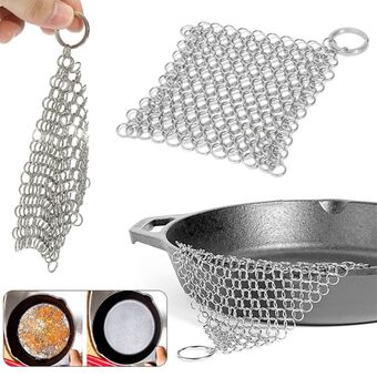 Ανοξείδωτο χάλυβα τετράγωνο χυτοσίδηρο Καθαριστικό Καθαριστικό Βούρτσα κατσαρόλας Καθαριστικό εργαλείο καθαρισμού κουζίνας μαγειρικών σκευών, μέγεθος: 8 × 8 ίντσες