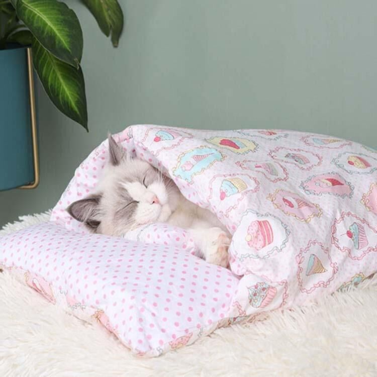 Closed Removable and Washable Cat Litter Sleeping Bag Winter Warm Dog Kennel, Size: L(Pink Ice Cream)