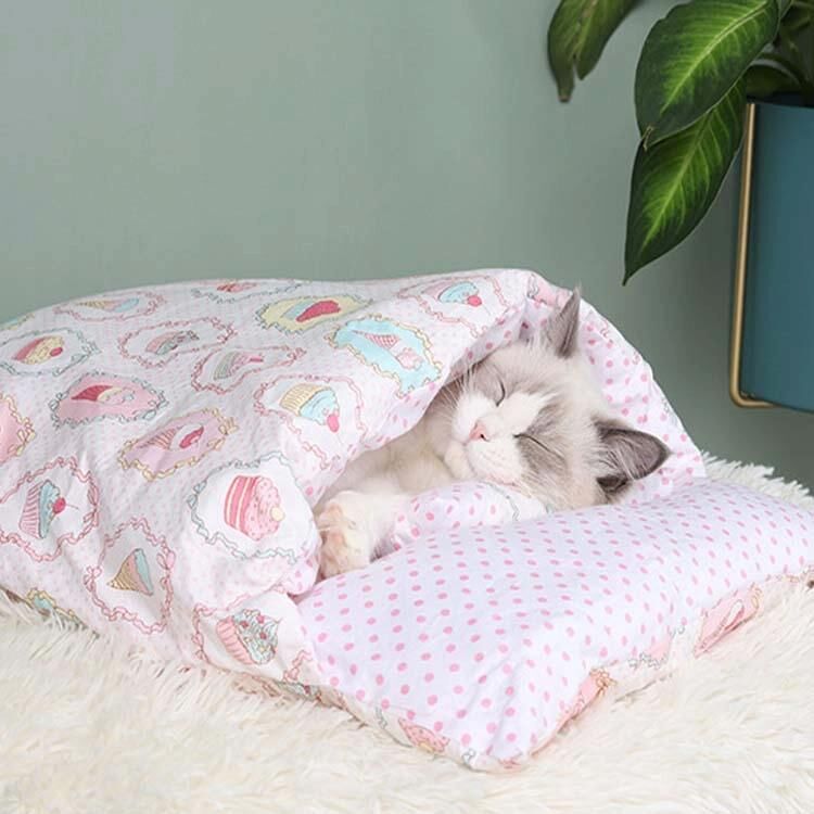 Closed Removable and Washable Cat Litter Sleeping Bag Winter Warm Dog Kennel, Size: M(Pink Ice Cream)