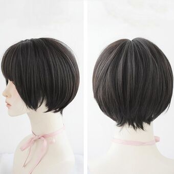 Wig Female Short Hair Round Face Full Top Headgear Short Hair Temperament Bangs Hair Cover(Black Brown 28CM)