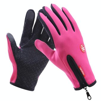 Cycling Gloves Full Finger Neoprene PU Breathable Leather Warm Winter Outdoor Sports Gloves(Pink)