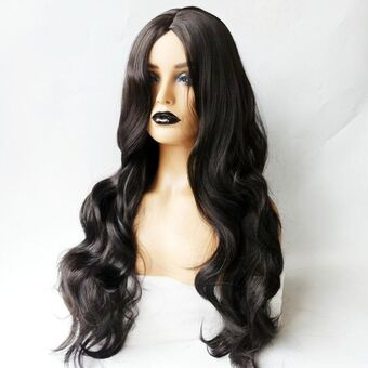 Centre-parted Big Curve Long Curls Wig Chemical Fiber Hair Full Headgear for Women (Black)