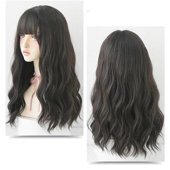 Περούκα μακριάς γυναικείας κόμης ελαφρώς σγουρή, φυσική και αφράτη κάλυψη μαλλιών, Χρώμα: Σκούρο καφέ