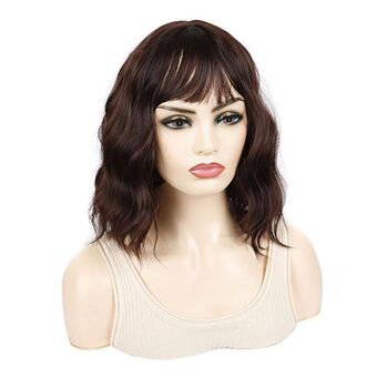 Water Wave Ripple Short Curly Hair With Bangs Fluffy Wig Headcovers, Color: Chestnut Color