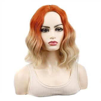 Water Wave Ripple Short Curly Hair With Bangs Fluffy Wig Headcovers, Color: Orange Red Brown