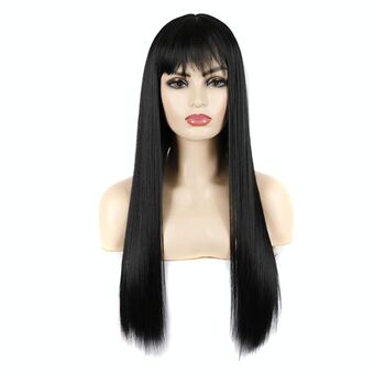 Dynamic Long Straight Hair With Messy Bangs Wig Headcover(Black)