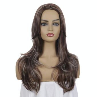 Women Split Wigs Long Curly Hair Synthetic Headgear(Dark Brown + Light Gold)