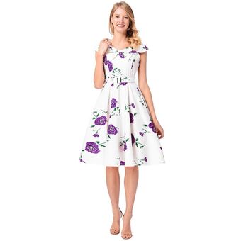 Ευρωπαϊκό νέο στυλ θηλυκό τυπωμένο φόρεμα πέτο λεπτό ρετρό στυλ Hepburn Rose μοτίβο φόρεμα με ζώνη στη μέση, μέγεθος: S (Μωβ)