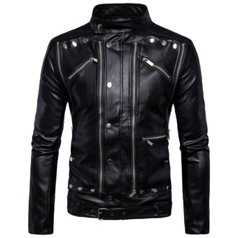 Μόδα Ανδρικά πολλαπλά φερμουάρ Δερμάτινα Κλασσικά καρφιά Punk Δερμάτινη μοτοσικλέτα Biker Jacket, μέγεθος: XL