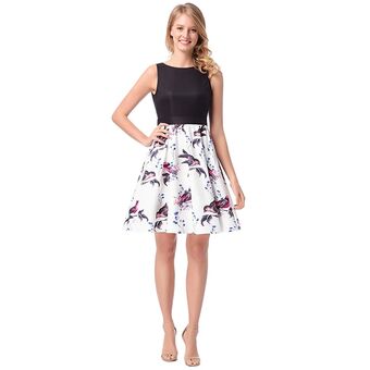 2018 Νέο προϊόν Ευρωπαϊκό και αμερικανικό στυλ εκτύπωσης πουλιών μοτίβο αμάνικο φορέματα, μέγεθος: S (Λευκό)