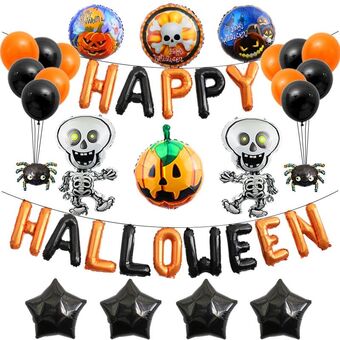 Halloween Aluminum Film Balloon Set Bar Ktv Shopping Mall Ghost Festival Flag Pulling Decoration Set, Style:Set 6