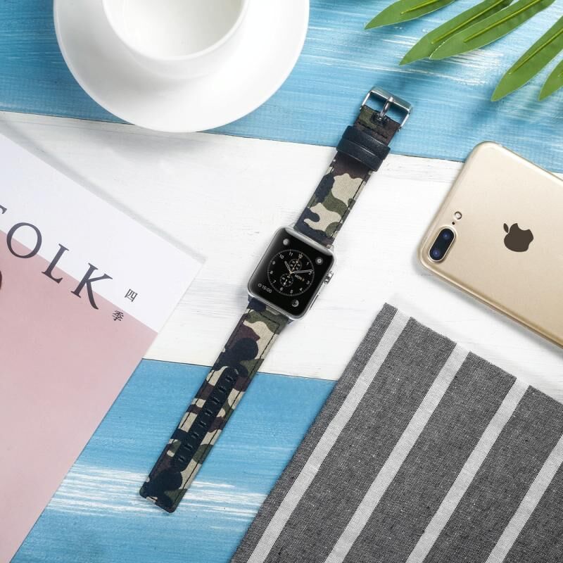 Λουρί για Apple Watch από ύφασμα και δέρμα κορυφαίας ποιότητας για Apple Watch Series 7 41mm / 6 & SE & 5 & 4 40mm / 3 & 2 & 1 38mm