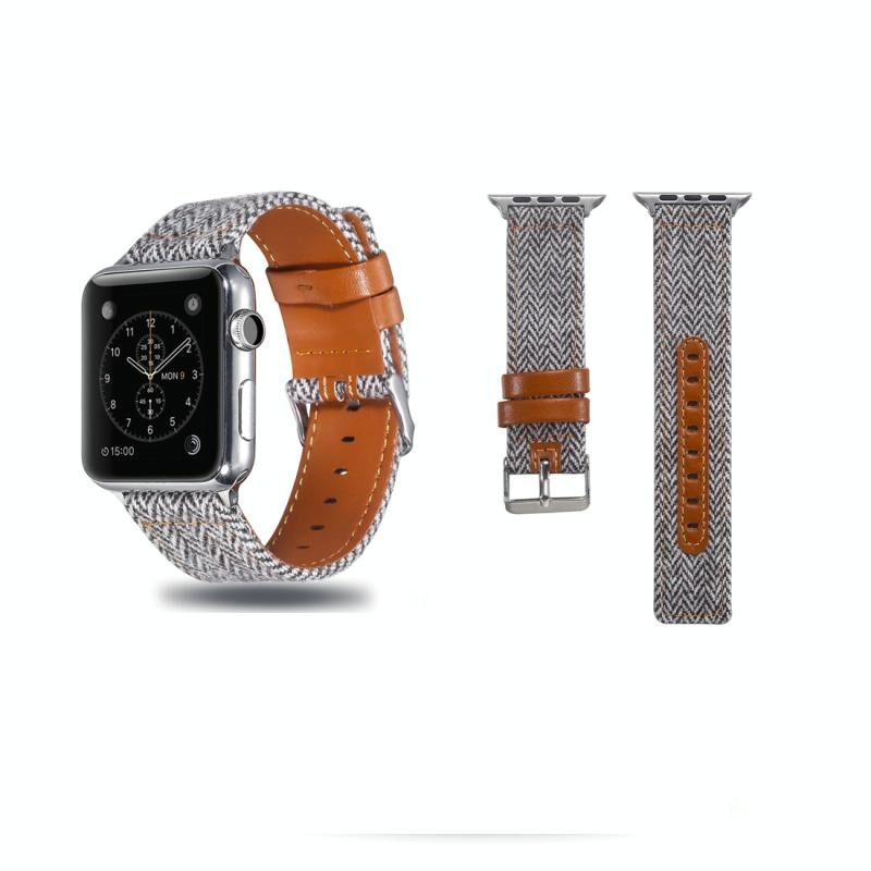 Λουρί για Apple Watch Series 7 41mm / 6 & SE & 5 & 4 40mm / 3 & 2 & 1 38mm από ύφασμα και δέρμα κορυφαίας ποιότητας.