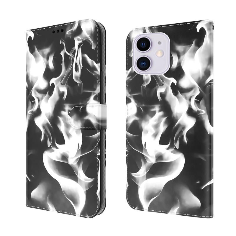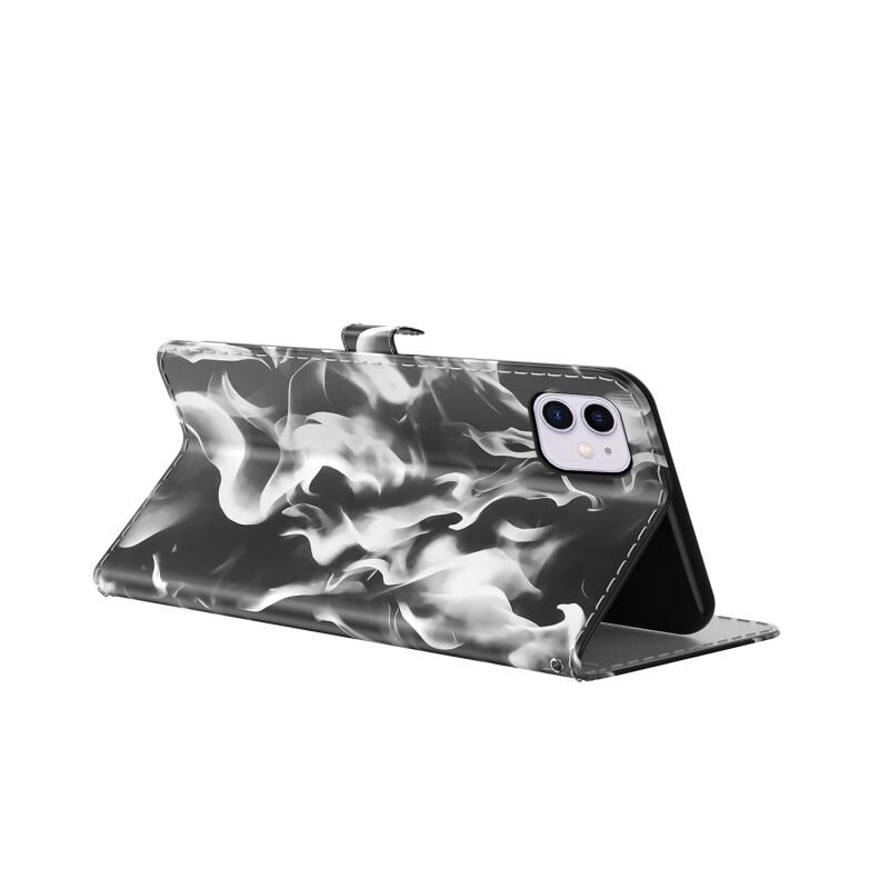 Θήκη Δερμάτινη με σχέδιο σύννεφων και ομίχλης, οριζόντιο άνοιγμα, με βάση & θήκη για κάρτες & πορτοφόλι για iPhone 11 (Μωβ)