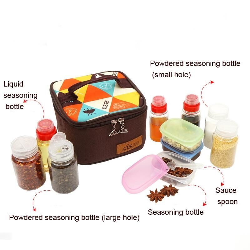 5. Ένα σετ κουτί μπαχαρικών που μπορεί να χρησιμοποιηθεί σε εξωτερικούς χώρους ή στην κουζίνα, το οποίο μπορεί να περιέχει διάφορα μπαχαρικά όπως υγρά, σκόνες, σάλτσες κ.λπ.