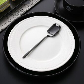 Κουτάλι καφέ από ανοξείδωτο ατσάλι με δημιουργικό σχέδιο ποδοσφαίρου, κουτάλι παγωτού, Χρώμα: Μαύρο