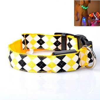 Καρό μοτίβο επαναφορτιζόμενο LED Glow Light Leads Pet Dog Collar για μικρά μεσαία σκυλιά, μέγεθος: L (κίτρινο)