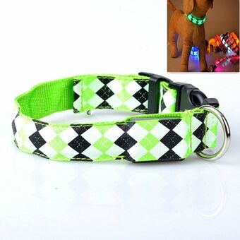 Καρό μοτίβο επαναφορτιζόμενο LED Glow Light Leads Pet Dog Collar για μικρούς μεσαίους σκύλους, μέγεθος: L (πράσινο)