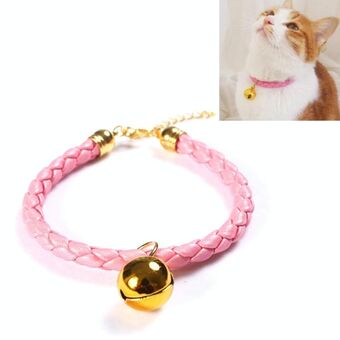 Προετοιμασμένο PU δέρμα Ρυθμιζόμενο κατοικίδιο ζώο Bell κολάρο γάτα σκύλος κουνέλι απλό κολάρο κολάρο, μέγεθος: S 20-25cm (ροζ)