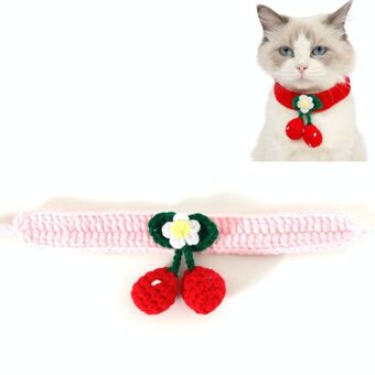 Pet Χειροποίητο πλεκτό πλεκτό μαλλί Cherry Cat Dog Collar Bib Ρυθμιζόμενο κολιέ, Προδιαγραφές: (ροζ)