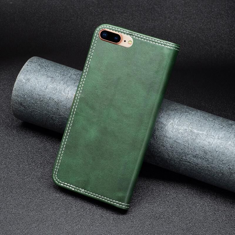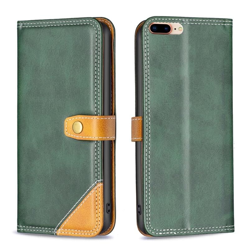 Θήκη Δερμάτινη Για iPhone 7 Plus / 8 Plus με Διπλή Ραφή και Αντιστοίχιση Χρωμάτων (Μαύρο)