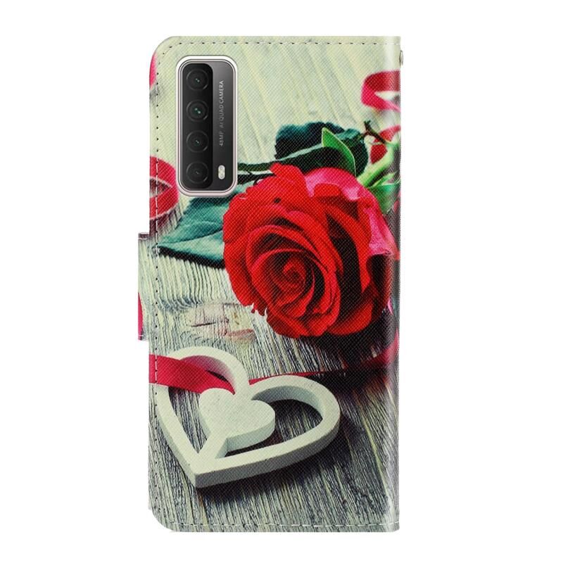 Θήκη Δερμάτινη με Αναδιπλούμενο Κάτω Μέρος, Χρωματιστό Σχέδιο, Οριζόντια Αναστροφή, με Θήκη & Υποδοχή Κάρτας & Πορτοφόλι Για Huawei P Smart 2021 / Y7a (Κόκκινη Γάτα) (idewei)