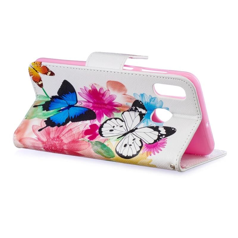 Έγχρωμο σχέδιο μοτίβο οριζόντια Flip δερμάτινη θήκη για Samsung Galaxy A20 & A30, με θήκη & υποδοχές για κάρτες & πορτοφόλι (δύο πεταλούδες)