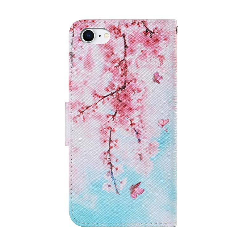 Θήκη Δερμάτινη PU με Πολύχρωμο Σχέδιο, Οριζόντια Αναδίπλωση, με Θήκη, Θήκες Καρτών, Πορτοφόλι & Λουρί για iPhone 8 & 7 (Ανθίσεις Κερασιάς)