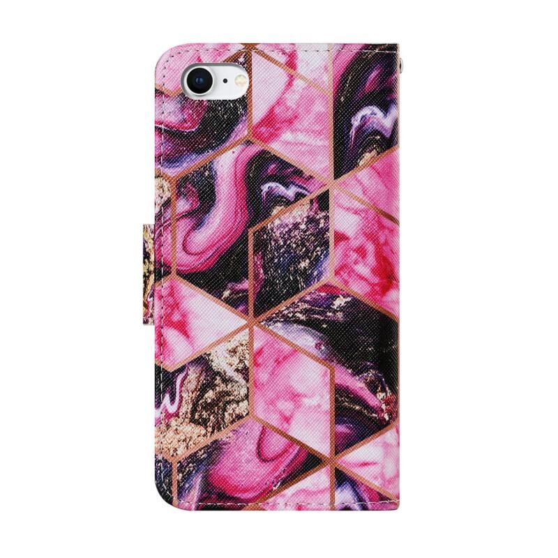 Θήκη Δερμάτινη PU με Σχέδιο Ζωγραφικής σε Χρώματα, Οριζόντια Αναδίπλωση, με Θήκη, Θήκες Καρτών, Πορτοφόλι & Λουρί για iPhone 8 & 7 (Μαύρο Μάρμαρο)