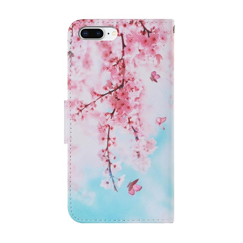 Θήκη Δερμάτινη PU με Πολύχρωμο Σχέδιο, Οριζόντια Αναδίπλωση, με Θήκη, Θήκες Καρτών, Πορτοφόλι & Λουρί για iPhone 8 Plus & 7 Plus (Ανθίσεις Κερασιάς)