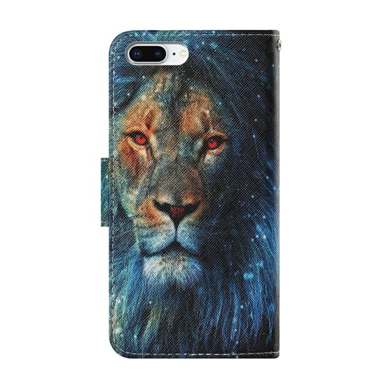 Θήκη Δερμάτινη PU με Πολύχρωμο Σχέδιο, Οριζόντια Αναδίπλωση, με Θήκη, Θήκες Καρτών, Πορτοφόλι & Λουρί για iPhone 8 Plus & 7 Plus (Λιοντάρι)
